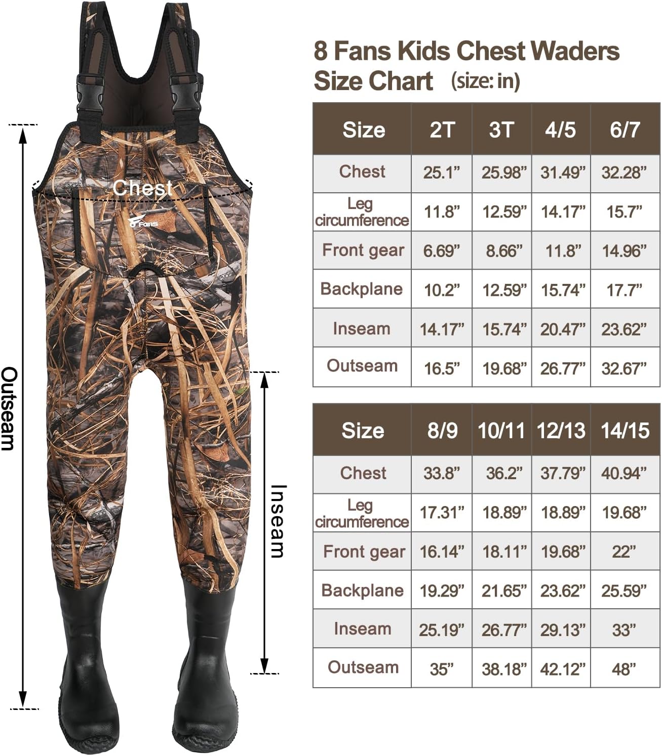 Whether your child is fishing, hunting, or simply exploring the great outdoors, the 8 Fans Hunting Waders for Kids are a must-have accessory. Give your little adventurer the gift of comfort and protection with these top-of-the-line youth fishing waders. Order yours today and watch your child's outdoor experiences reach new heights!