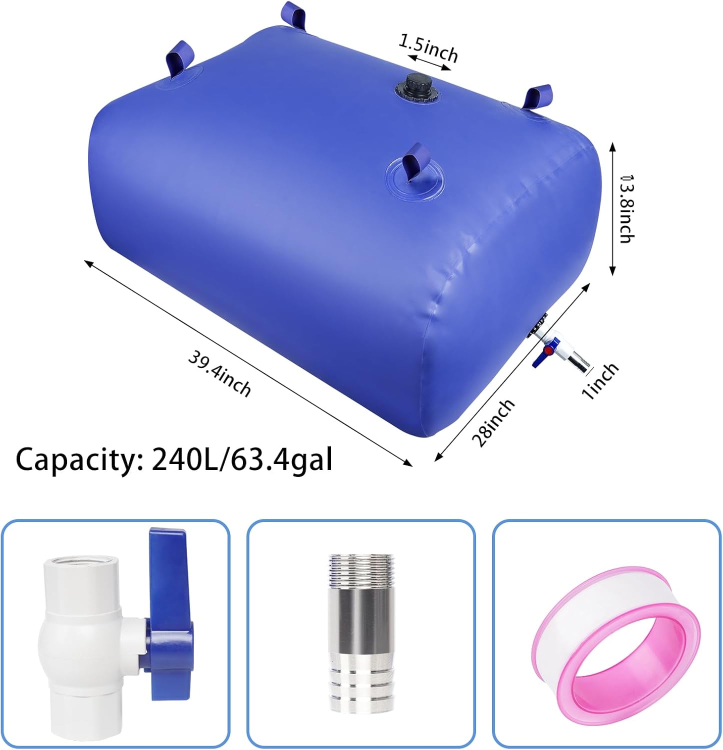 - Large Capacity & Compact Storage – Holds over 63.4 gallons (240 liters) of water, providing ample supply for irrigation, camping, and RV needs. Folds down compactly when empty, making it easy to store and transport wherever you go.